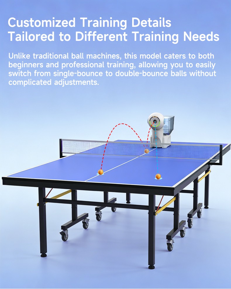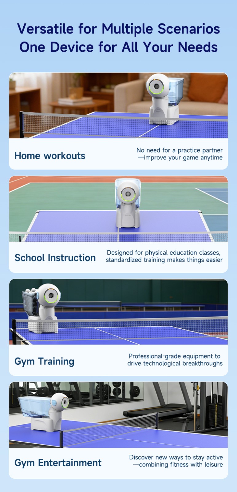 4.5 kg with a quick-clamp tabletop design, it fits any standard table tennis table. Perfect for home, school, clubs, or community centers – flexible training wherever you go.