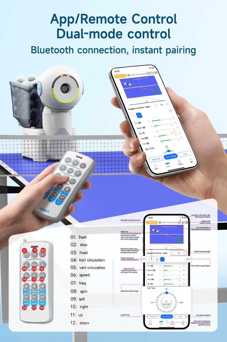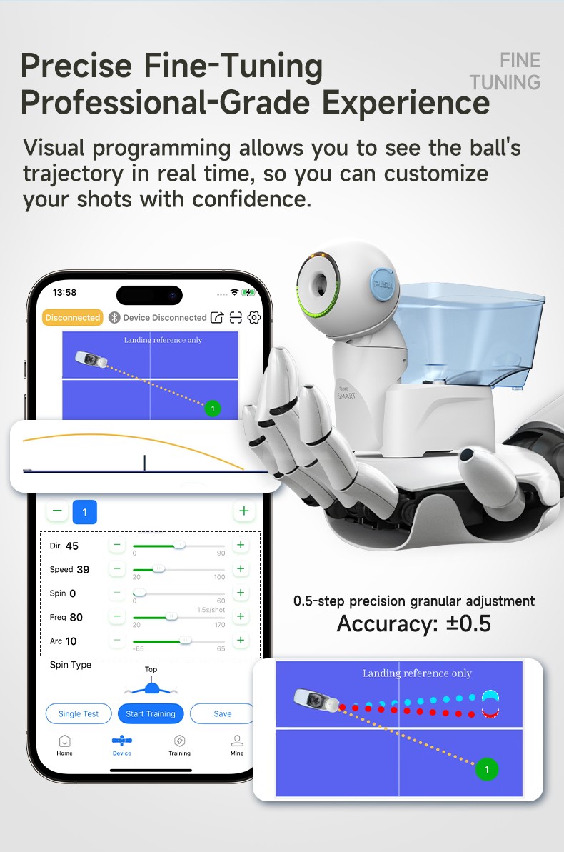 Connect by app&remote allows real-time adjustment of frequency (20–150 balls/min), speed (2–16 m/s), . Full control, anytime.